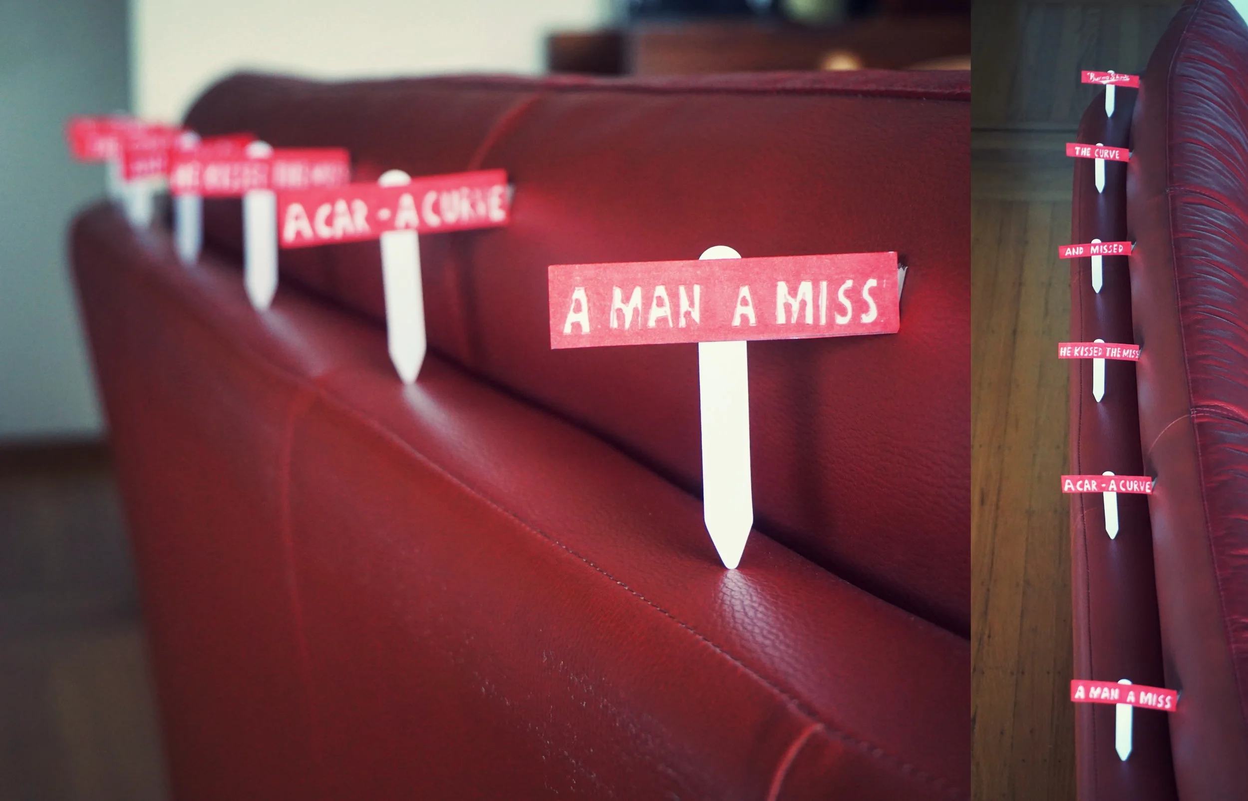 Au pied du pont (pas celui-là, l'autre), un certain Torres a enkysté quatre petites languettes de bronze dans les dalles de la promenade. L'allure des joggers leur fera certainement manquer le haïku écartelé qui s'y trouve inscrit : "Ciel bleu, tu es mon seul témoin". Il faut marcher pour aller à la rencontre de chaque morceau suivant dans la phrase. Déstructurer un texte pour y injecter du silence ou de l'espace, voilà un principe simple pour provoquer l'anticipation chez le lecteur, piquer sa curiosité, installer un suspense. Dans le film Three billboards, Frances McDormand interpelle la police locale sur le meurtre de sa fille, en inscrivant sa question en trois segments répartis en lettres géantes sur autant de panneaux publicitaires placés le long d'une route. Et c'est en commençant par lire le dernier que les hommes du shérif vont découvrir le message. Lorsqu'une technique est ainsi capable d'attiser l'attention et de polariser notre cerveau, on imagine que les publicitaires s'en sont déjà emparés. Dans les années folles, la marque Burma-Shave en a fait un usage resté célèbre dans l'histoire automobile américaine : pour vanter les mérites de sa nouvelle crème à raser auto-moussante (oui, parce qu'avant cette innovation, il fallait se barbouiller à l'aide d'un blaireau pour produire la mousse), ils commencent à installer le long des routes des séries de six panonceaux régulièrement espacés, sur lesquels on pouvait lire le plus souvent un joyeux limerick à la gloire des joues lisses ou parfois des micro-poèmes humoristiques pour sensibiliser aux dangers de la conduite. Il avait la bague / / Il avait l'appart / / Mais elle s'est frotté à son menton / / Et ça / / S'arrêta là. On a aujourd'hui du mal à imaginer l'engouement que provoquèrent ces slogans entre 1927 et 1963, l'attente pour découvrir ceux de la nouvelle saison, les lectures à rebours de ceux de la voie d'en face, les ritournelles familiales dans les voyages au long cours. Et on espère qu'aucun accident ne fut provoqué par l'inattention du chauffeur, ralentissant pour déchiffrer un message ... de prévention routière. A MAN - A MISS / / A CAR - A CURVE // HE KISSED THE MISS / / AND MISSED / / THE CURVE.